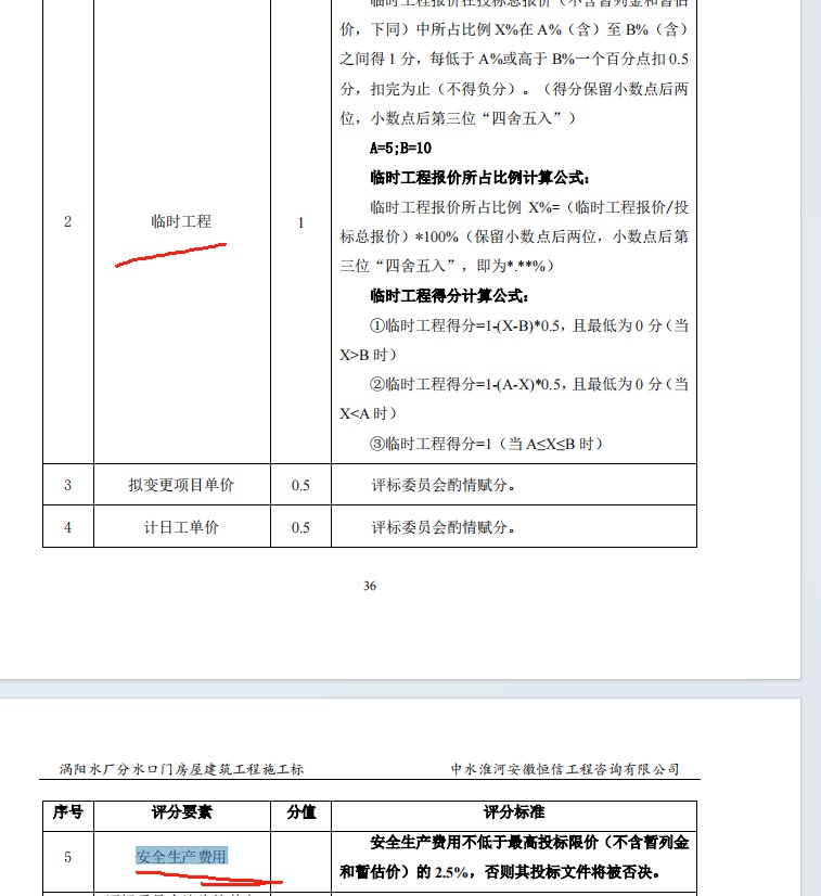 方案完整,措施得當(dāng)且有針對(duì)性,投入有保障得2分,無(wú)安全生產(chǎn)方案或無(wú)保證措施或無(wú)創(chuàng)建文明示范工地方案得0分;其余酌情賦分,但最低不低于1.2分。