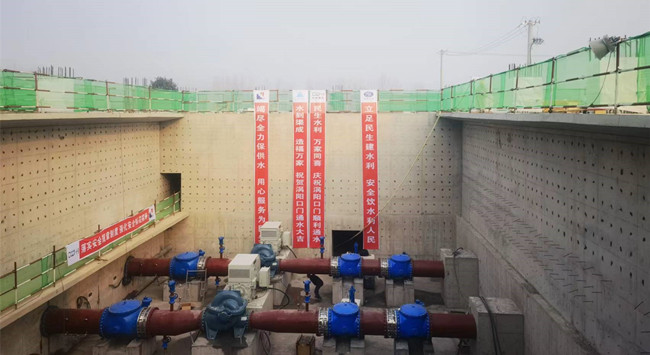 夜以繼日攻堅克難,彰顯中水淮河速度。渦陽水廠分水口門工程工期緊,任務(wù)重,永久用地及臨時用地征遷難度大,工程于10月7日正式開工;10月25日進(jìn)行首倉砼澆筑(主泵房底板);12月8日完成除主泵房地面以上及副廠房一層以上的全部砼澆筑;12月24日完成全部涉及通水的水機(jī)設(shè)備、金屬結(jié)構(gòu)、閥管件、電氣設(shè)備安裝與調(diào)試,全部引水段、輸水段及永久供電線路施工,具備通水條件;12月26日工程順利通水,整體具備長期供水條件;12月27日,正式開始向渦陽地表水廠供水。安徽省水利廳就該工程年底通水目標(biāo)進(jìn)行確認(rèn)后,公司黨委及領(lǐng)導(dǎo)高度重視,各部門、各專業(yè)派駐人員急現(xiàn)場之所急,解現(xiàn)場之所需,項目部及各參建單位錨定目標(biāo)、爭分奪秒,上下聯(lián)動全力保障既定目標(biāo)節(jié)點實現(xiàn)。