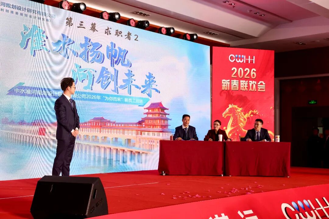 長淮千里風(fēng)正勁,策馬揚(yáng)鞭再向前!2月8日,公司舉辦2026年職工新春聯(lián)歡會。淮委黨組成員、副主任吳貴勤出席聯(lián)歡會并致辭,淮委規(guī)計(jì)處處長倪大銀受邀參加,公司黨委書記、董事長孫勇代表公司黨委、領(lǐng)導(dǎo)班子致辭,公司黨委副書記、總經(jīng)理肖建峰,公司領(lǐng)導(dǎo)班子全體成員出席聯(lián)歡會,同全體員工歡聚一堂,喜迎新春共賀佳節(jié)。超過300名員工觀看了此次新春聯(lián)歡會。