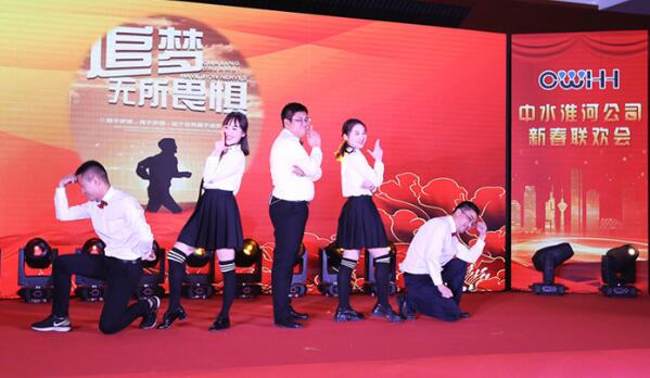 聯(lián)歡會(huì)以震撼炫目的燈光秀和熱鬧喜慶的賀歲舞獅拉開序幕,在隨后兩個(gè)多小時(shí)里,公司員工各展才藝,精彩節(jié)目輪番上演,有根據(jù)日常工作改編的歌舞《中水進(jìn)行曲》和小品《面試》、曼妙精彩的舞蹈《芒種》《萬(wàn)物生》、歡快動(dòng)聽的對(duì)唱《一個(gè)像夏天一個(gè)像秋天》《小幸運(yùn)》《光輝歲月》、幽默搞笑的相聲《慢性子》《酒后軼事》、激情澎湃的詩(shī)朗誦《治淮新時(shí)代》、款款深情的獨(dú)唱《最初的夢(mèng)想》以及豫劇《洼洼地里好莊稼》、創(chuàng)意魔術(shù)秀等,此外淮河工會(huì)也為公司帶來了舞蹈節(jié)目《巧手助力扶貧忙》。節(jié)目中間還穿插著激動(dòng)人心的抽獎(jiǎng)環(huán)節(jié),帶給現(xiàn)場(chǎng)員工驚喜連連。最后聯(lián)歡會(huì)在氣勢(shì)恢宏的大合唱《我和我的祖國(guó)》中圓滿落下帷幕,整場(chǎng)晚會(huì)喜慶洋溢、精彩紛呈,給在場(chǎng)的所有人帶來了一場(chǎng)精彩的視聽盛宴。