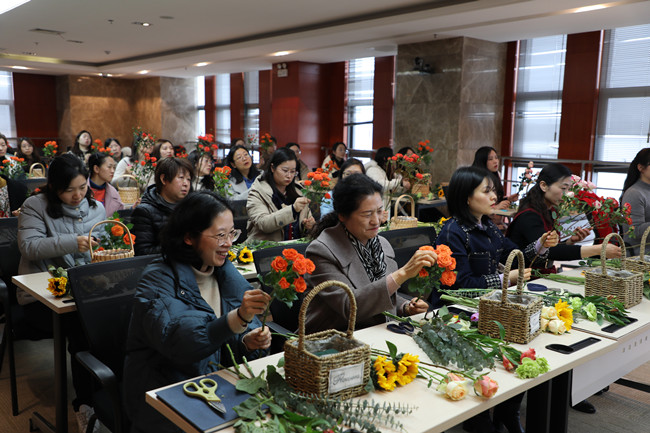 活動現(xiàn)場,花香四溢。活動中,花藝師介紹了鮮花常識,從鮮花的選擇與購買,到保養(yǎng)與擺放、花籃造型等方面,向女職工們傳授花藝知識。女職工們興趣盎然,邊聽邊學邊動手,興致勃勃地創(chuàng)作自己的插花作品,在芬芳的花香和愉快的氣氛中,與鮮花來了一次親密接觸。大家在感受美、欣賞美、創(chuàng)造美的過程中度過了一個愉快的下午。女職工們紛紛表示,將以更加飽滿的熱情投入到工作中,在各自崗位上發(fā)揮“半邊天”作用,為公司高質量發(fā)展而努力奮斗!