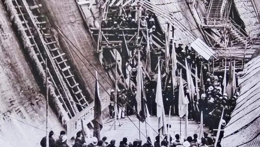 1956年水庫開工建設,在沒有外國專家援助、缺乏現代化機械設備的艱難環(huán)境下,老一輩治淮人不畏艱苦、奮勇作戰(zhàn),自主設計斜鋼塔箕斗提升設備,可以就地制造、操作簡單,有效解決了混凝土運輸問題。創(chuàng)新性發(fā)明管道循環(huán)水冷卻方式,應用在重力拱壩大體積混凝土澆筑中,解決了壩體內部混凝土溫度控制的問題。這些技術創(chuàng)新,極大地推動了工程建設的進度,也將水利建筑技術推向新的高度。