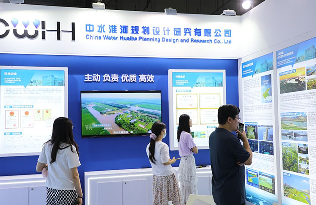 公司在A展廳設置展區,圍繞國家治淮重點工程、國家骨干水網工程、科技進步、人水和諧-水工程與水文化的交融、數字孿生淮河建設、數字孿生智能泵站技術、板橋水庫混凝土壩壩體滲漏深水水下防滲處理關鍵技術及灌注樁-粉噴樁混合式樁基技術等八大主題設置展板。